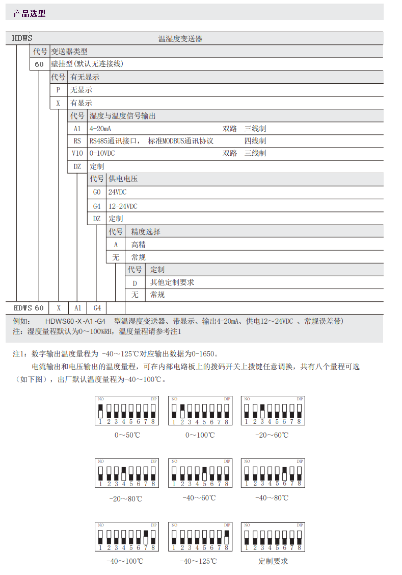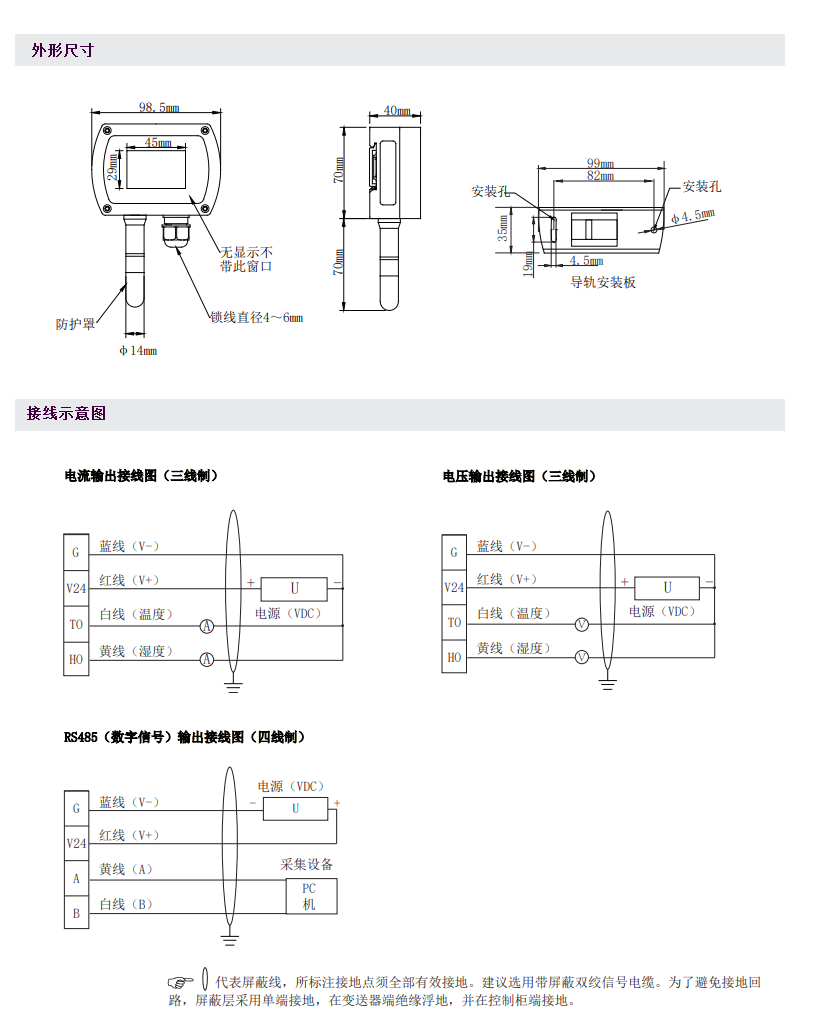 输出信号: RS485、4-20mA、0-10VDC